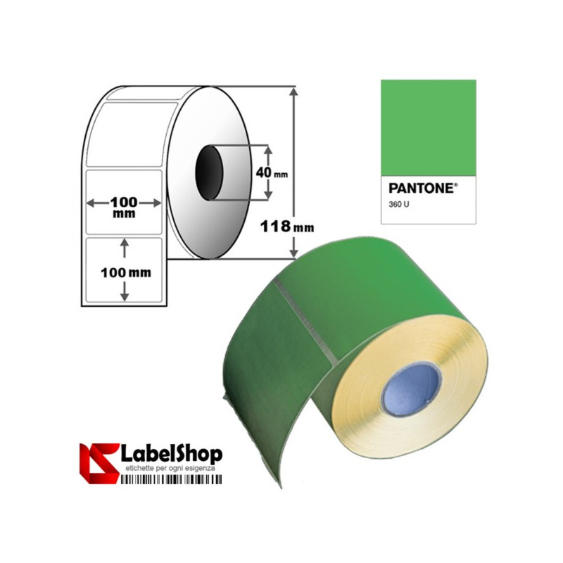 Etichette autoadesive 100x100 in Bobina da 500 pz. in carta Termica verde