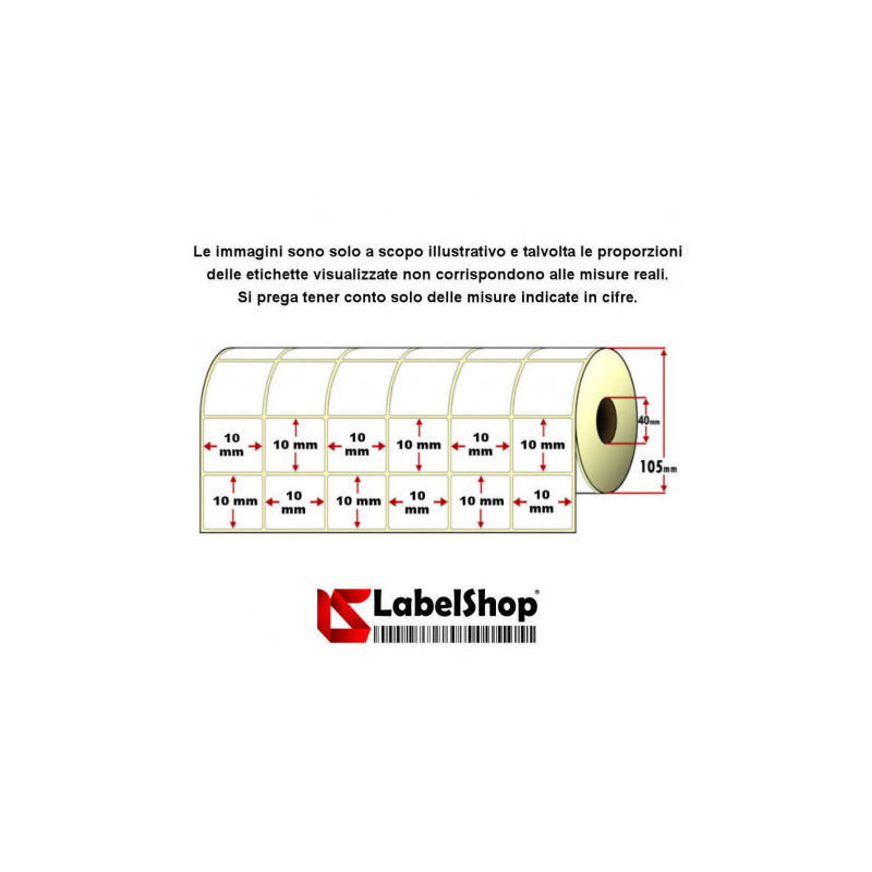 Bobina a doppia fila di etichette autoadesive mm 10x10 in carta vellum bianca TOP